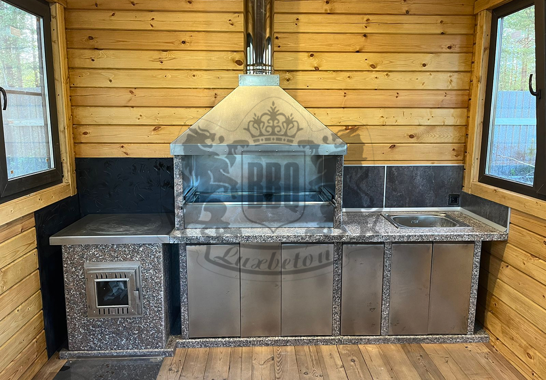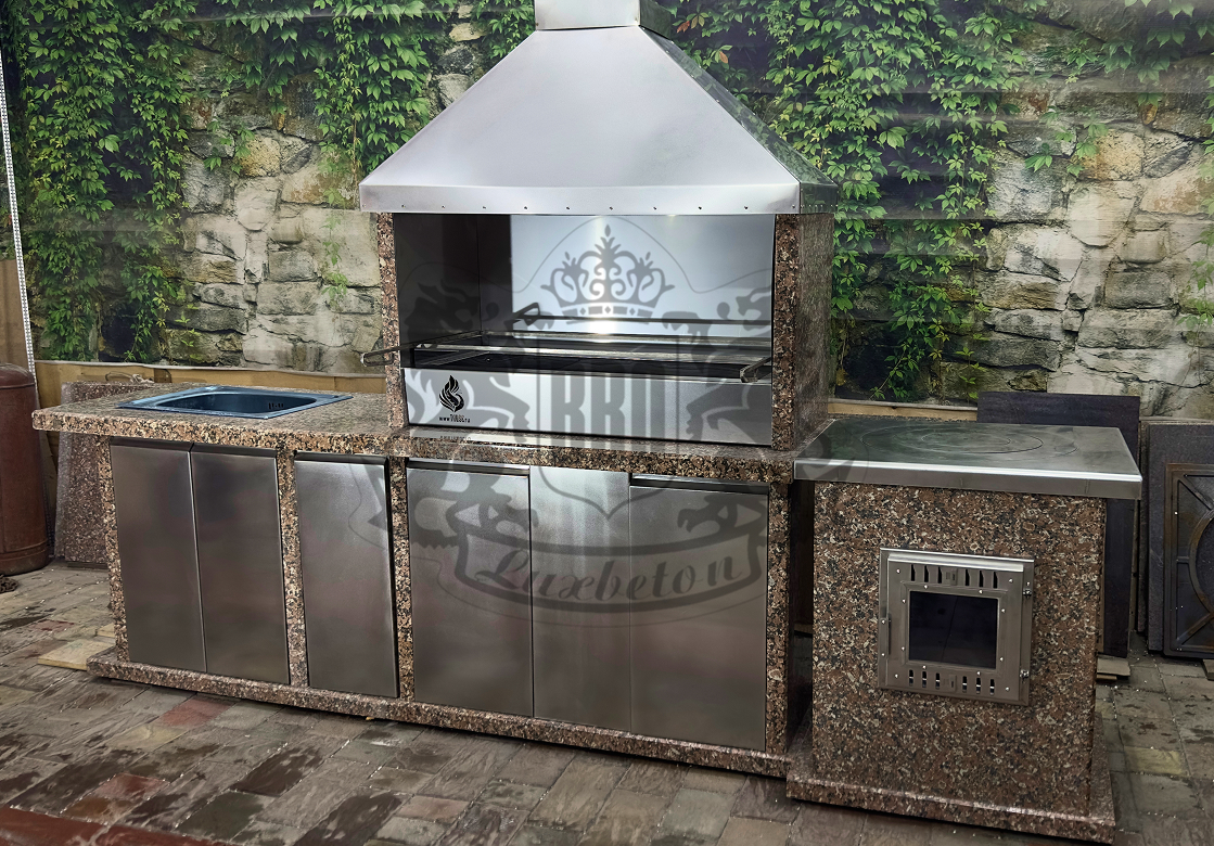 Разделочный стол с мойкой отлично дополнит вашу барбекю зону