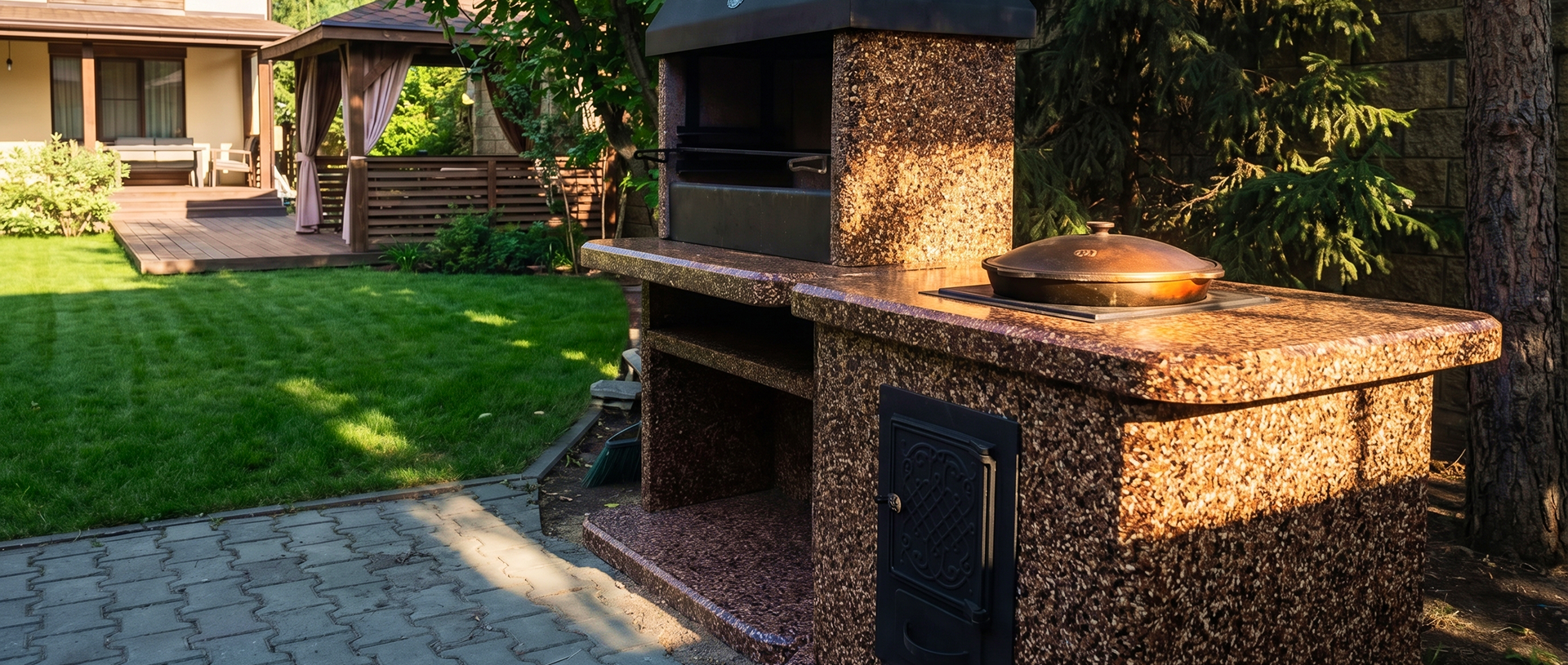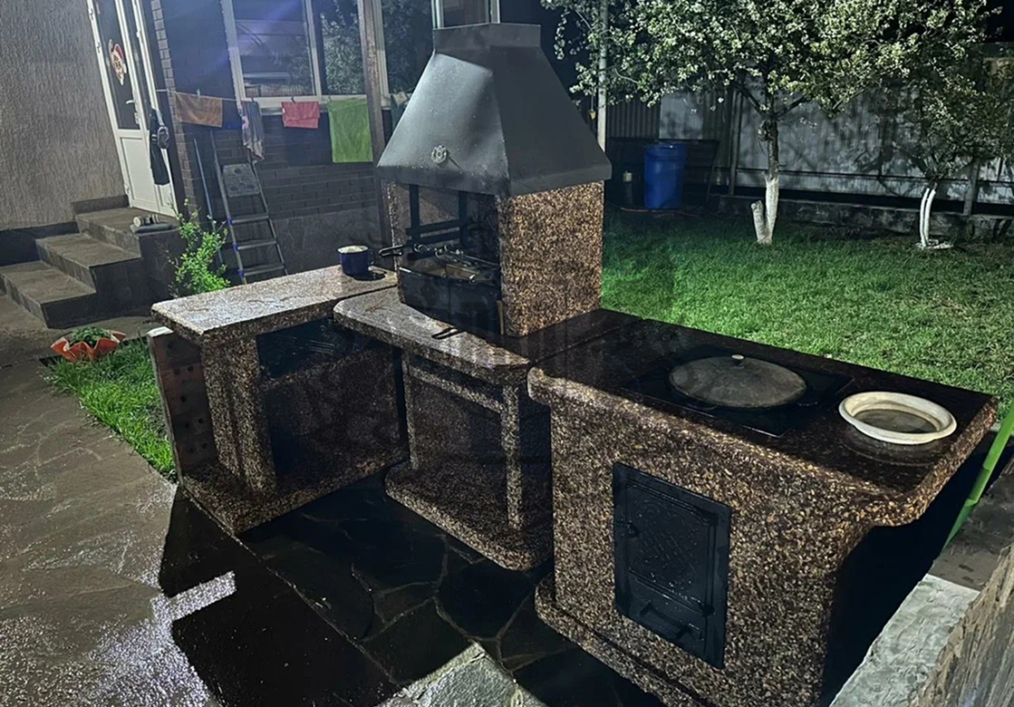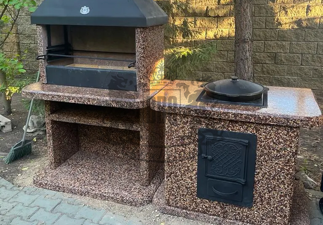 Создайте зону для шашлыка на даче добавив печь под казан в фактуре “”Ночное небо”” Габбро-диабаз и мрамор создают чёрно-белый контраст,...