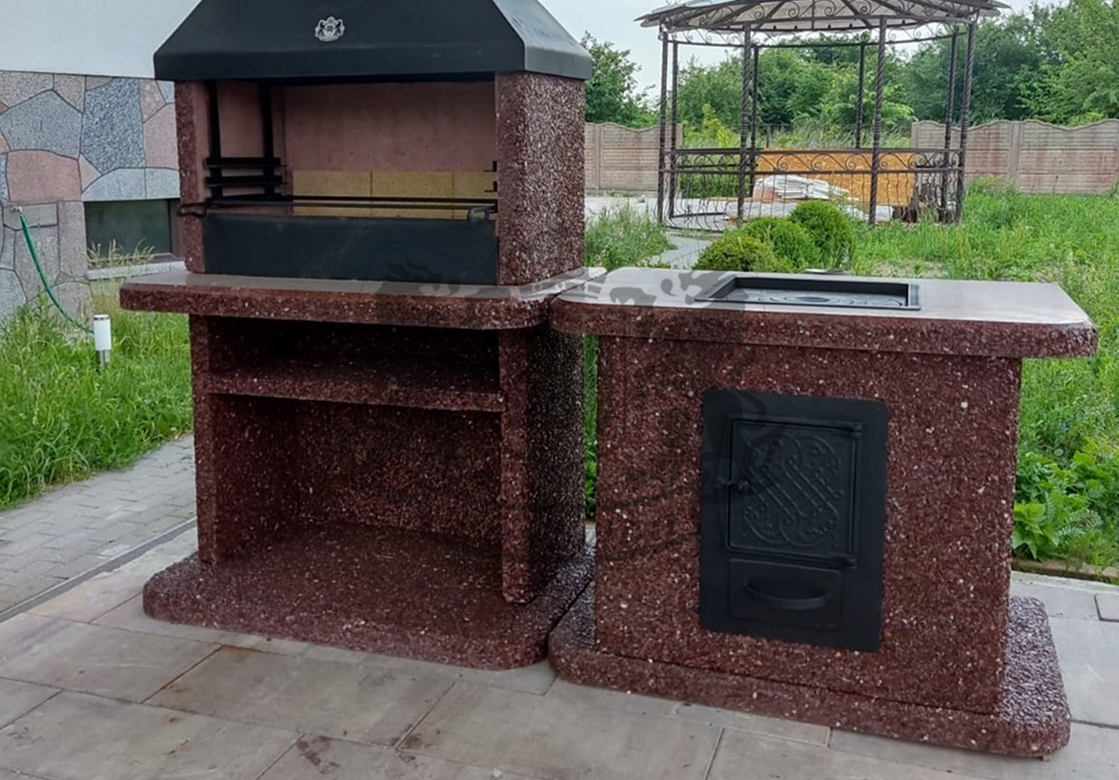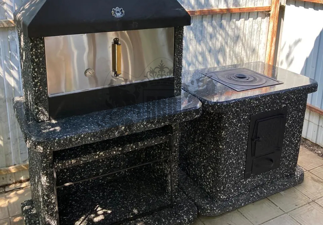 Печь под барбекю комплекс в фактуре «Змеевик» — это долговечность и стиль. Змеевик и габбро-диабаз создают глубокий зелёно-чёрный градиент. Чугунная...