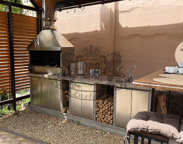 Разделочный стол из цельного гранита и нержавеющей стали AISI 304 станет надежным и стильным решением для вашей барбекю зоны